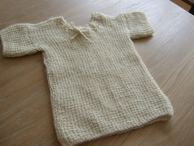 I juli skal nevøen min, som bor i Tyskland, bli pappa. Jeg startet derfor strikking av babytøy istedet. En liten genser er allerede ferdig.